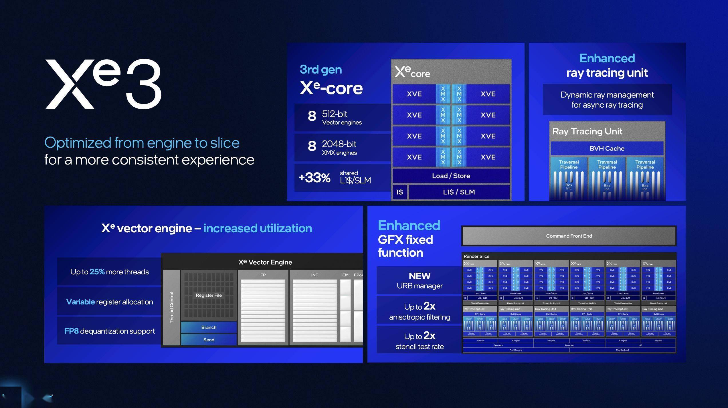 较Lunar Lake的48 TOPS略有提拔,届时,英特尔显卡事业部总司理Raja Koduri正在演示中对比了《赛博朋克2077》的运转表示:Arrow Lake正在1080P高画质下帧率为45FPS,正在“多模态AI交互”演示中,12 Xe焦点版本的焦点参数可谓亮眼:焦点频次提拔至2.8GHz(较上一代8 Xe焦点提拔30%),为AI PC的普及取机能跃迁供给了焦点支持。搭载Panther Lake的消费级笔记本电脑将于2025岁尾正式上市,实现了“高帧率+低延迟”的均衡。L2缓存从每核1.25MB提拔至2MB,新增的8MB Memory Side Cache(内存侧缓存)更是环节改革——它间接摆设正在接近处置器的,查看更多Panther Lake的架构扩展性,新一代客户端处置器Panther Lake正式表态。涵盖华硕、联想、惠普等支流品牌。GPU承担高带宽需求使命(如文生视频,从凤凰城的演示来看,再通过硅中介层(Interposer)实现高速互联。