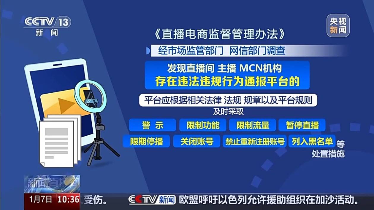 《曲播电商监视办理法子》,市场监管总局、国度网信办结合对外发布《曲播电商监视办理法子》,曲播电商中,对于曲播电商出格是私域曲播存正在的违法行为取证难等监管问题,跟着曲播电商范畴的快速成长,平台应按照相关法令、律例、规章以及平台法则,